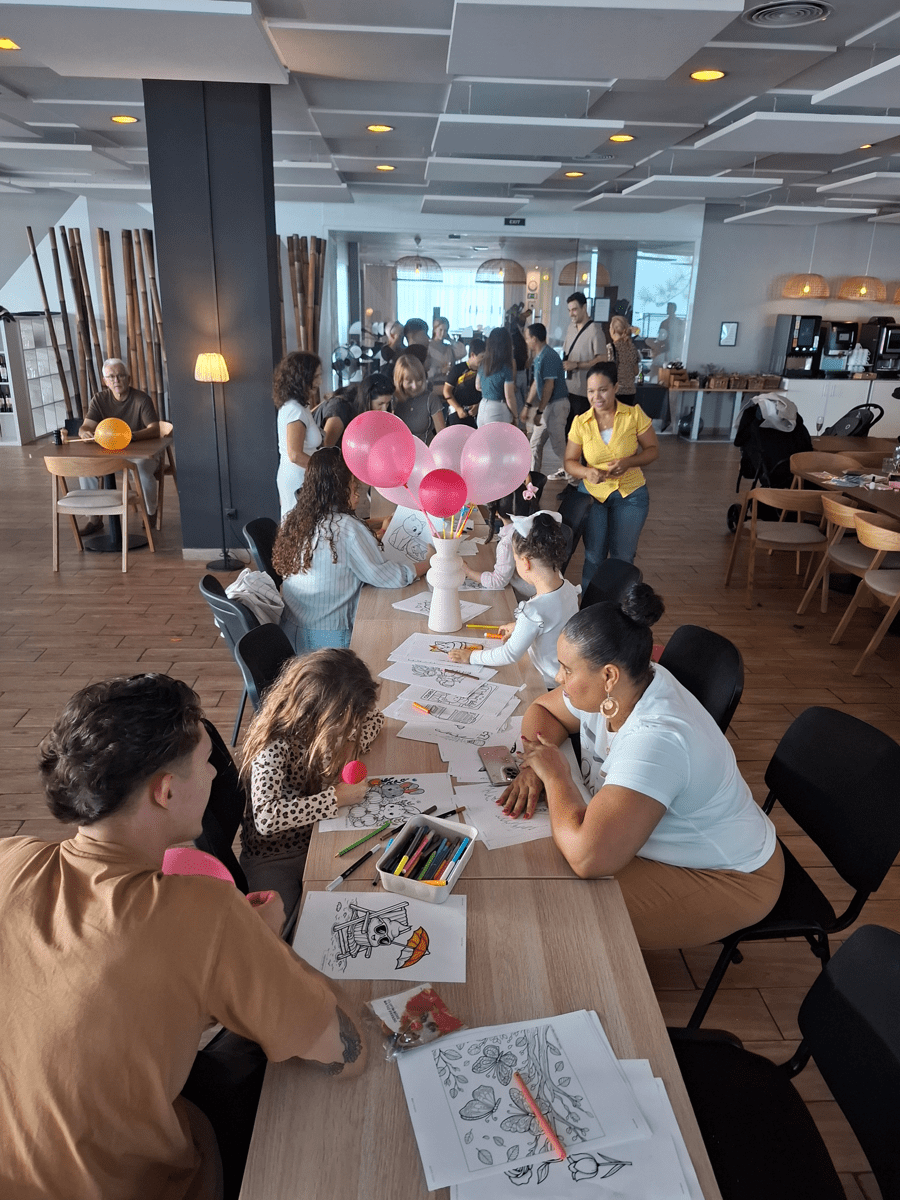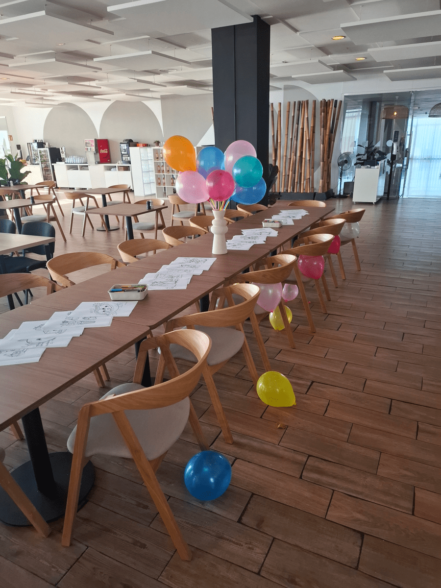 La jornada fue organizada por nuestra directora Marie y lean Coach , quienes prepararon juegos y regalos para los niños. Nuestro chef nos sorprendió con un mini buffet para todos los invitados. Fue un éxito: muchos trabajadores vinieron acompañados de sus familias, hijos, nietos, parejas y hermanos. Ofrecimos una copa de cava, zumos para los niños y un tapeo en el restaurante del hotel. Los más pequeños disfrutaron con dibujos para colorear, globos y juegos pensados para todas las edades.