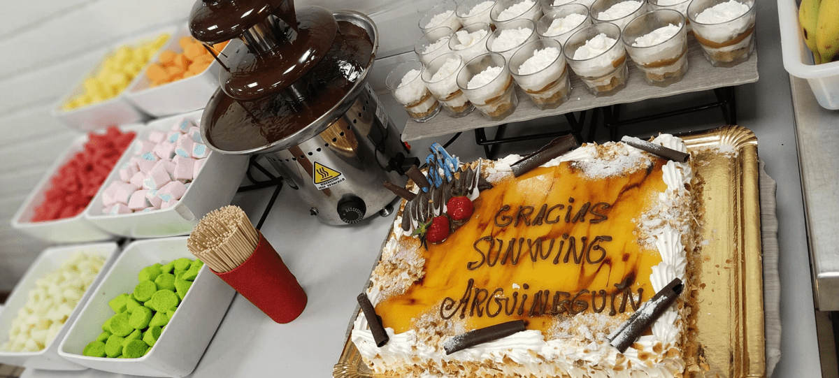 Como muestra de agradecimiento, el equipo de Dirección quiso tener un detalle con todos los trabajadores. Dado que el hotel se encontraba en plena operativa y no era posible reunirnos todos al mismo tiempo, se organizó una comida especial en el comedor de personal, adaptada a los distintos turnos.
