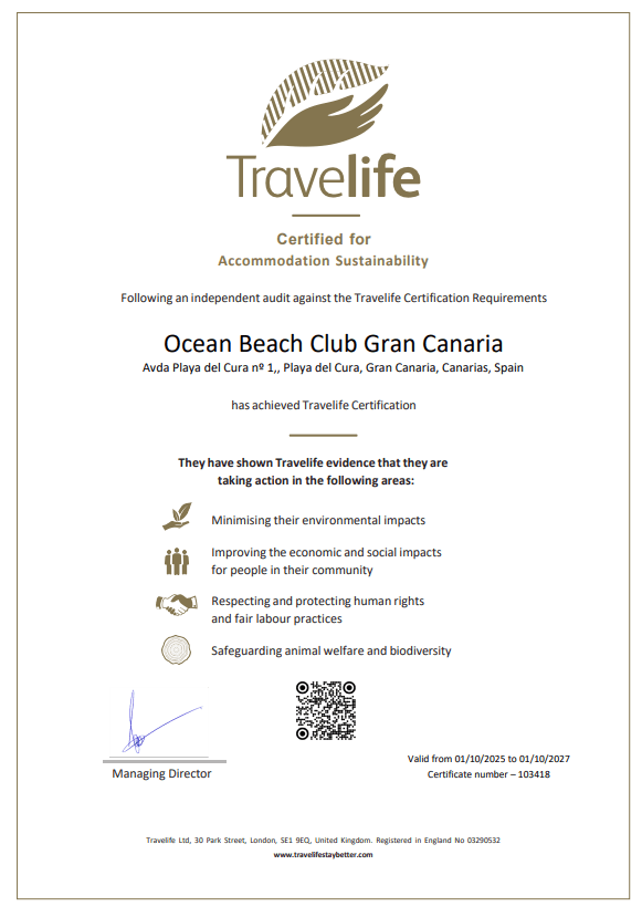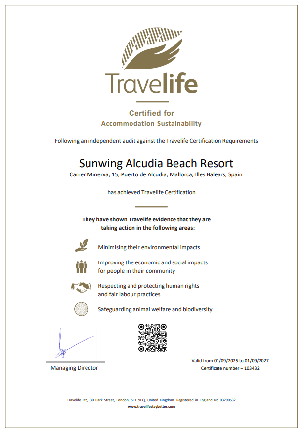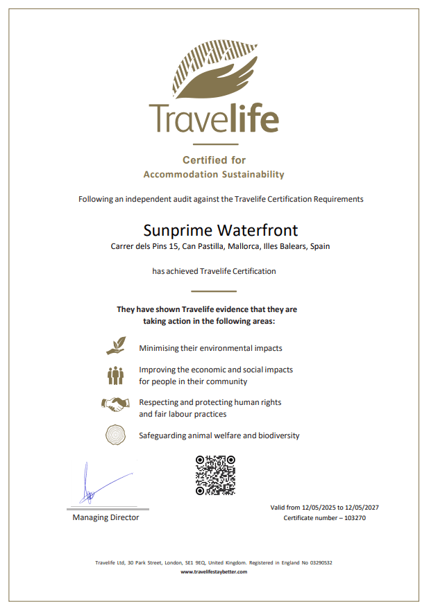 Los hoteles de Gran Canaria, Sunprime Atlantic View, Ocean Beach Club playa del Cura y Sunwing Arguineguin y Sunprime Waterfront y Sunwing Alcudia Beach en Mallorca han conseguido la certificación de Travelife.